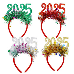 عيد الميلاد سنة جديدة ، غطاء رأس عيد ميلاد سعيد ، رباط شعر مع رقائق ذهبية ، غطاء رأس براق للعطلات